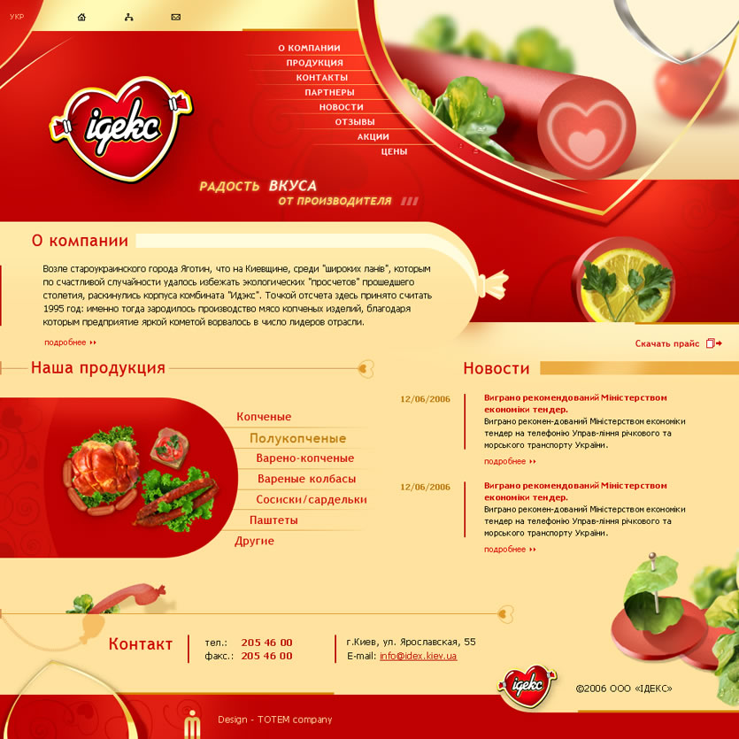 Сайт выполнен в ярком и живом стиле, подчёркивающем любовь компании к потребителю. Ненавязчивая изюминка — постоянно нарезающиеся бутербродики на главной страничке, которые так и просят: «Съешь меня!..»