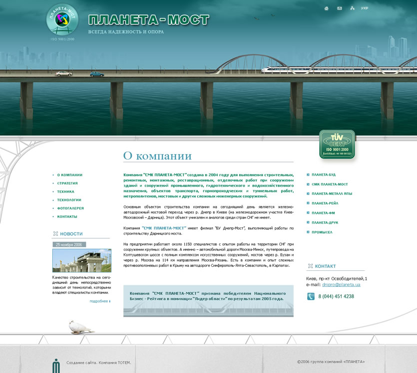 «Планета-мост» — одна из ведущих компаний группы «Планета». Ее деятельность охватывает строительство промышленных объектов, включая такие сложные инженерные проекты, как строительство мостов, метрополитенов и т.д.