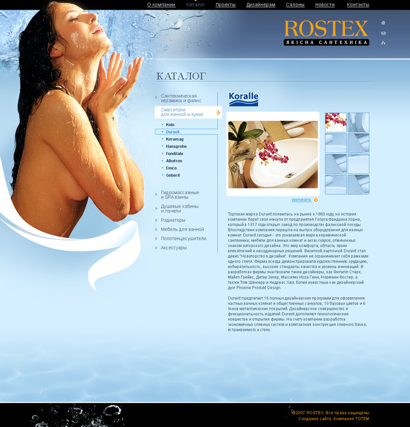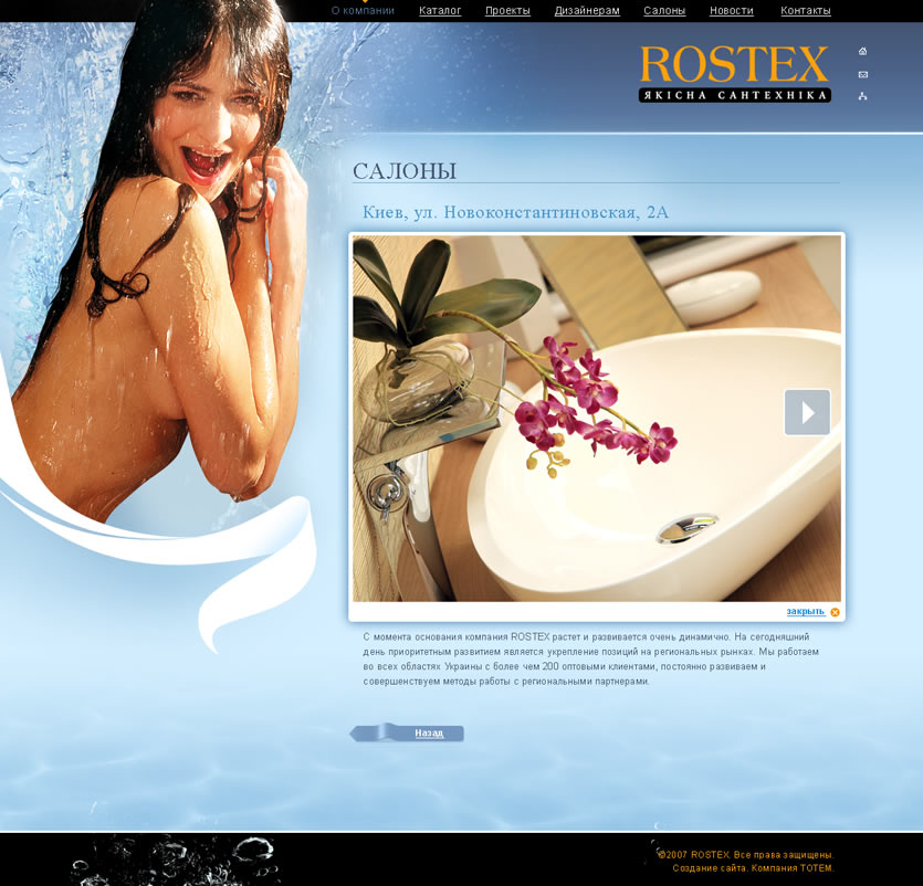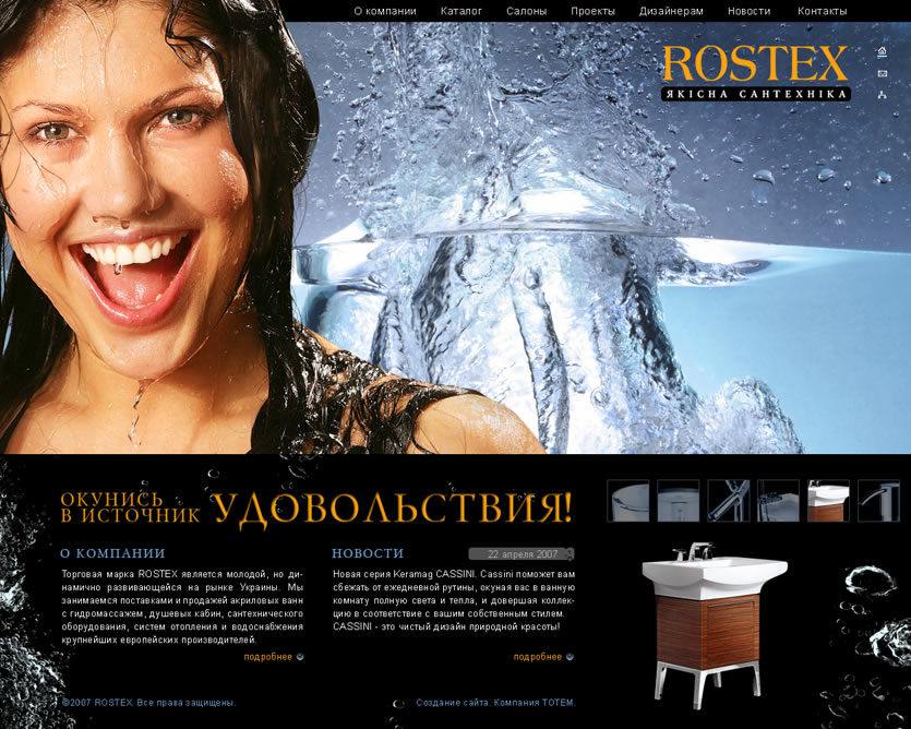 После проведения ребрендинга компания «Rostex» обратилась к нам, чтобы совершенно по-новому заявить о себе в пространстве Интернет. Слоган сайта: «Окунись в источник наслаждения!».
